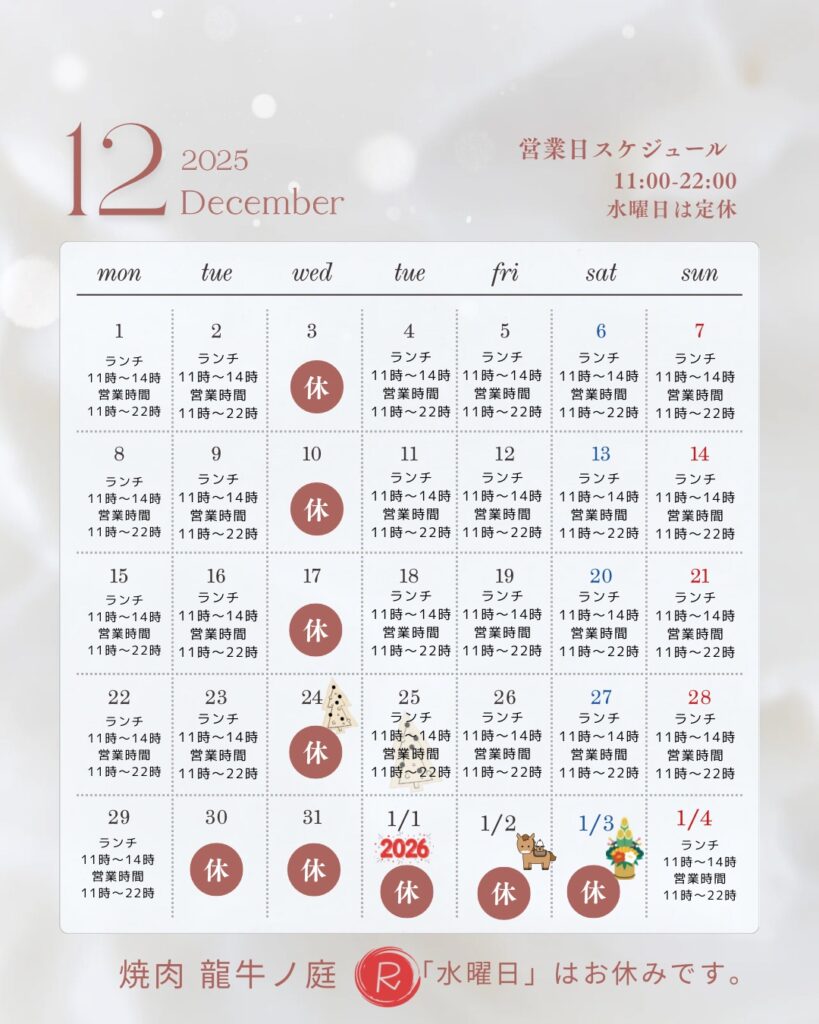 一年の締めくくりに、ご家族やご友人とおいしいお肉を囲んで、温かい時間をお過ごしくださいませ🥰✨